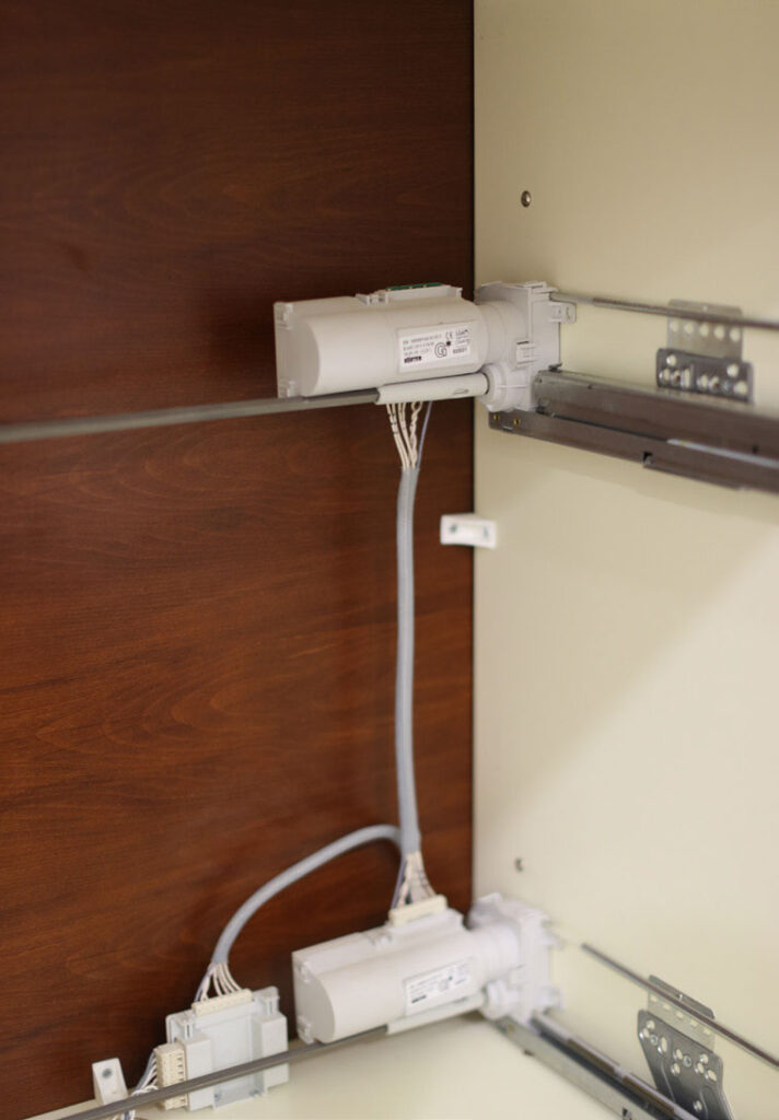 Electric touchscreen base cabinets and fully functional sensotronic drawer systems without handles provide free access to the user.