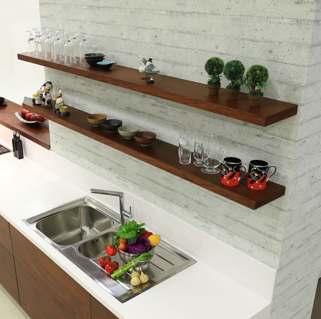 Instead of hanging cabinets, it offers the user shelves with hidden connections that provide transparency at any time. Electric touchscreen base cabinets and fully functional sensotronic drawer systems without handles provide free access to the user.
