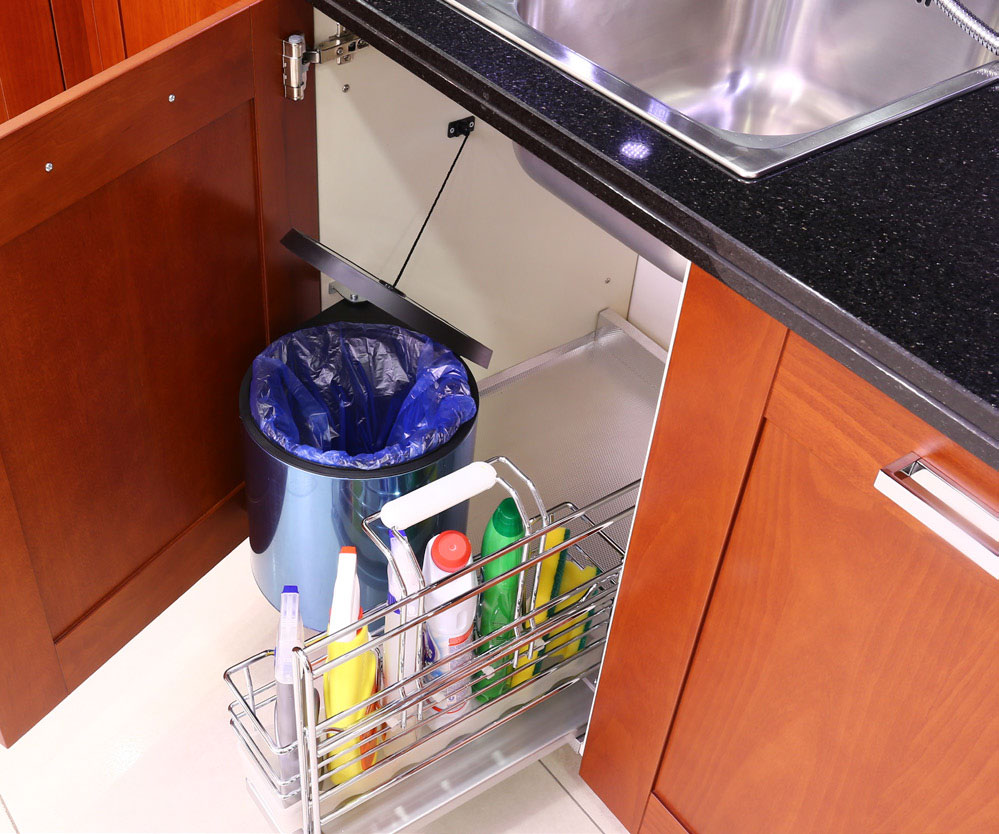 Magic corner kiler sistemi ve eviye altı temizlik malzemesi sepeti,ekstra bir kullanım kolaylığı sağlıyor.